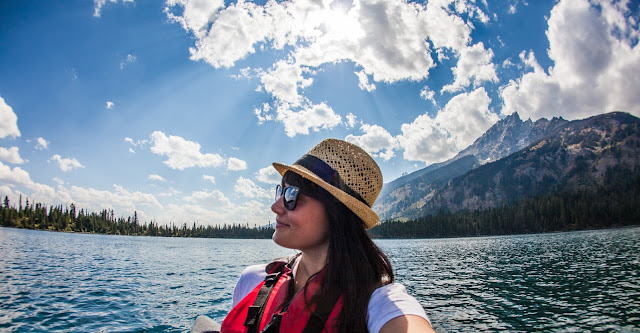 Eventually we pulled ourselves away from the shore to go up to the main entrance of Jenny lake to have a picnic lunch. We decided to check out the canoe rentals for later, but then decided why not have our picnic lunch in a canoe, out in the middle of the lake! Best. Decision. Ever! It was such an awesome day for a picnic on the lake.