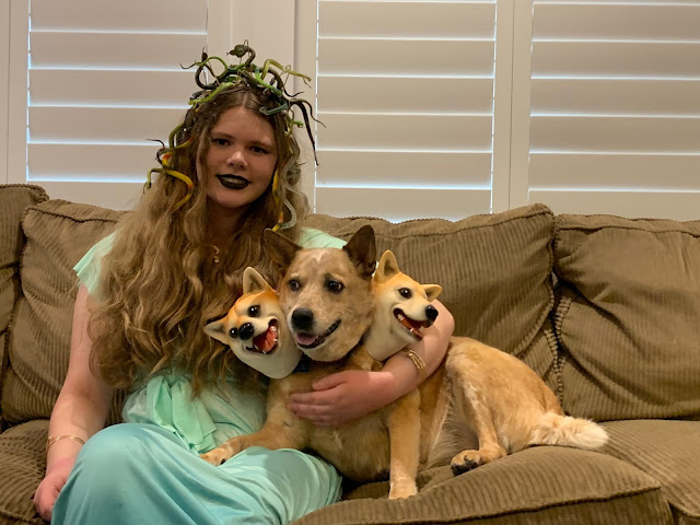 The Griffins looked amazing, half their family dressed up as characters from Greek Mythology. Jenny was Athena, Nora was Madusa, Mike was Poseidon and Dorie was Cerberus. Evie made a costume that looked just like her character on Animal Crossing, she did such a great job! Sam dressed as Shy Guy from Super Mario.