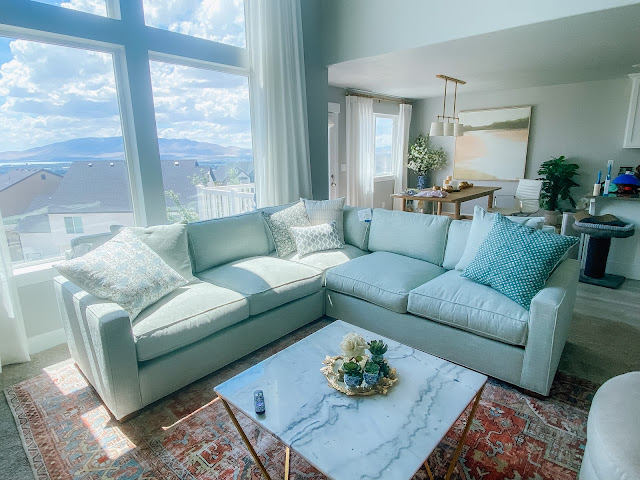 We choose the extra deep seats, the extra soft cushions, light wood feet to match my new table, and an indoor/outdoor material that is velvety soft and won't fade from the sunlight from my large windows. It is a little shorter on one side than the other couch so it doesn't fit the space as well. However, when I sat on this couch for the first time, I got to have that moment of pure happiness at how comfortable it is. This couch brings me so much joy every single time I sit on it. I practically live on this couch now, it is literally everything I have ever wanted in a couch. So even though it doesn't quite fit the space and it was a journey to get it, it was all worth it.