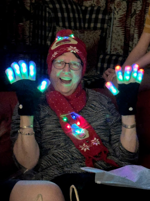 Mom got a light up scarf, hat and gloves and she was actually pretty thrilled about it.