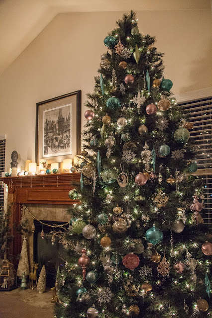 I decorated for Christmas the day after Thanksgiving, I could not wait to get in the Christmas spirit! I have always wanted to do a 1950ish vintage Christmas, and this was the year I made that happen. All my decorations were in pale pink, green and blue with accents of gold and silver.