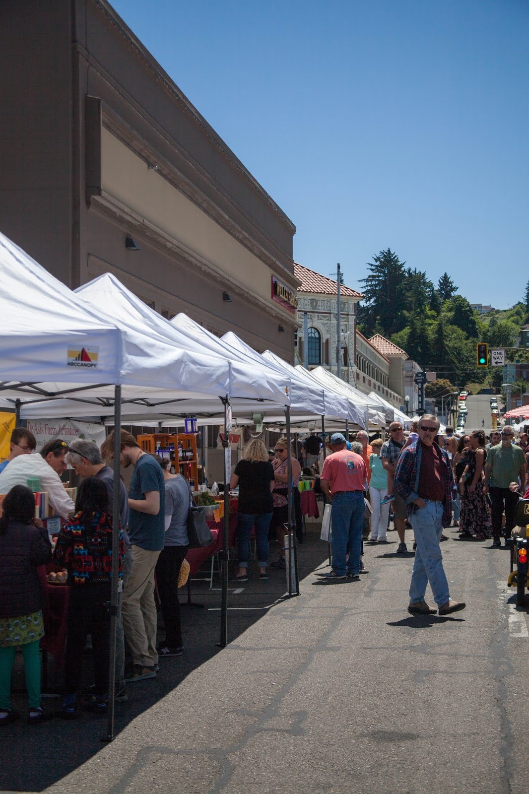 After our tour of the Flavel House, we walked a few blocks down to the heart of the town, where there was a farmer's market going on we wanted to check out. The streets of Astoria are so beautiful and charming, full of brightly colored Victorian houses with flowering gardens. Clementine's is an adorable bed and breakfast, and their signs were gorgeous.